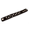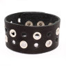 Кожаный браслет Sieve — отличный узкий кожаный браслет с отверстиями, украшен люверсами по поверхности. В качестве застежки использован ряд кнопок на три размера руки. Доступен к изготовлению в черном, коричневом и белом цветах.
