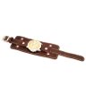 Браслет для часов Plato с прямоугольной подкладкой под циферблат и двумя ремешками как классические модели. Ширина подкладки 5 см, а основной ремешок крепится на ней за счет полос кожи на заклепках. Данная модель придаст любым наручным часам вид в духе киберпанка и вы готовы к тематической вечеринке.