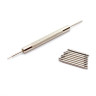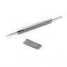 Комплект для снятия и установки часового ремешка или браслета. Состоит из небольшого двустороннего инструмента и комплекта шпилек креплений спринг-бар с двумя фланцами по бокам. Инструмент имеет две стороны - одна с выемкой для сдвига шпильки с помощью фланца, а вторая сторона с ровным круглым стеком для снятия элементов браслетов или шпилек без фланцев (например в пряжках с отверстиями по бокам в месте шпильки)