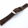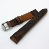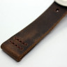 Кожаный ремешок для наручных часов Rider Brown в стиле модерн из одного слоя кожи с прошивкой в две строчки. Изготовлен из плотной кожи коричневого цвета с коньячным оттенком с эффектом крейзи хорс с высветлением.