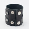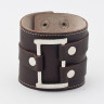 Мужской широкий прошитый кожаный браслет D318 с крупной железной рамкой в качестве украшения в стиле стимпанк и киберпанк. Рамка закреплена полосами кожи на заклепки. Браслет застёгивается на быстрые кнопки и рассчитан на руку 17-19 см в обхвате.