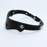 Чокер из нескольких фигурных сегментов, изготовленных из двух слоев натуральной кожи. В качестве соединений использованы заклёпки со стразами.