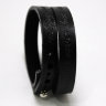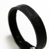 Маленький узкий кожаный браслет с гравировкой надписи. Лаконичный дизайн позволяет комбинировать браслет с часами, с аналогичными или другими браслетами. Использована черная кожа с глянцевым покрытием повышенной толщины около 2.5 мм, застежка - кобурная пукля.
