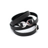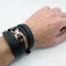 Тонкий длинный и узкий кожаный браслет Valimar одевается в 4-6 оборотов на руку(зависит от размера руки). Состоит из двух узких длинных полос натуральной кожи, скрепленных фигурной серебристой рамкой в форме икса или символа похожего на знак бесконечности.