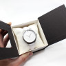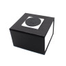 Прямоугольный подарочный футляр для наручных часов и браслетов Pride&Bright с крышкой-книжечкой. Изготовлен из плотного дизайнерского картона с мелкой зернистой структурой в чёрном матовом цвете.