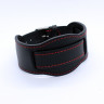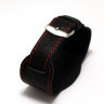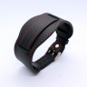Кожаный ремешок M18 RD с креплением по типу НАТО из чёрной кожи с контрастной красной прошивкой. Полоса для крепления рассчитана на спрингбары 18-22 мм, ширина подкладки 43 мм в самом широком месте, на сужении 33 мм.  Изготовлен вручную из натуральной кожи с использованием нержавеющей фурнитуры.