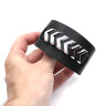 Браслет украшен крупной металлической фурнитурой в виде нескольких шевронов из сплава, закрепленных на центральной полосе из кожи.