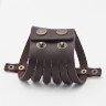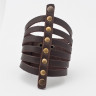 Широкий шкіряний браслет Кхалісі з дизайном у вигляді кількох смуг скріплених смугою шкіри на заклепках посередині. Загальна ширина близько 9 сантиметрів, застібка - швидкі кнопки на два положення 17 і 19 см в обхваті.