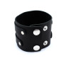 Великий чоловічий браслет у байкерському стилі з металевими вставками прямокутної форми. Основна ширина - 60 мм, застібається на дві кнопки. Виготовлений з натуральної шкіри ВРХ товщиною близько 2 мм.