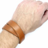 Оригінальний довгий коньячний браслет з товстої цільної ремінної шкіри (близько 3,8 мм). Одягається в два оберти, застібається на кобурною застібку з гвинтом. Розрахований на вільну носку тому НЕ провисає і не втрачає форму за рахунок своєї товщини.