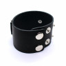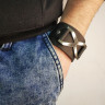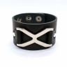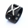 Шкіряний браслет з товстої шкіри з великою металевою рамкою у вигляді іксообразного хреста. Два ряди кнопок в якості застібки, товщина шкіри близько 2,5 мм.