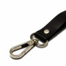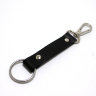 Черный брелок из натуральной кожи с карабином и заводным кольцом 35 мм. Выполнен в классическом стиле для кожаных брелоков - в виде хомута с заклёпкой около кольца.