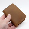 Невелике портмоне візитниця Junior з натуральної шкіри світло-коричневого кольору з ефектом крейзі хорс. Виконано у вінтажному стилі без обробки краю.