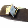 Шкіряній зажим для грошей в класичному стилі двостороннього кошелька. Ліва сторона використовується для карт (2 відділення), верхнє відділення укорочено і його можна використовувати частіше для дрібних грошей, чим для карти. Права сторона з відступом дозволить фіксувати велику кількість грошей.