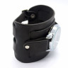 Наручний годинник Frant з чорним циферблатом і контрастними білими цифрами. Встановлено на широкий шкіряний браслет із двома застібками пряжками. Оснащений японським механізмом із трьома стрілками.
