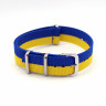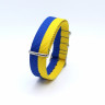 Щільні нейлонові ремінці в патріотичному забарвленні прапора України - жовто-блакитні для стандартного наручного годинника. Ремінці виконані з міцного нейлону, оснащені якісною фурнітурою в кольорі нікель.