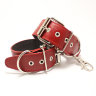Яскраві парні шкіряні прошиті наручники з м'якої шкіри у два шари. Браслети забезпечені люверсами, півкільцями, а також карабіном для їхнього з'єднання між собою. Може стати чудовим подарунком коханим людям, особливо на день Св. Валентина. Виконані з телячої шкіри, продубльованої чорною підкладкою та по периметру прошиті міцною поліефірною ниткою в тон браслета.