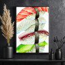Задоволення і передчуття, естетичне захоплення, відчуття свіжості та легкості. Усі ці емоції може викликати простий постер із зображенням суші. З деякої відстані це зовсім і не суші, а цікава абстракція в техніці акварелі.