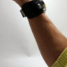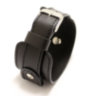 Чорний прошитий шкіряний ремінець для великого годинника. Сам ремінець і кріплення годинника встановлені на широку прямокутну платформу за допомогою гвинтів. Виготовлений із гладкої чорної натуральної шкіри.