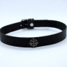 Вузький чорний шкіряний чокер із готичним хрестом. Застібка – прямокутна пряжка для регулювання довжини. Фурнітура в кольорі нікель. Перед замовленням виміряйте довжину вашої шиї.